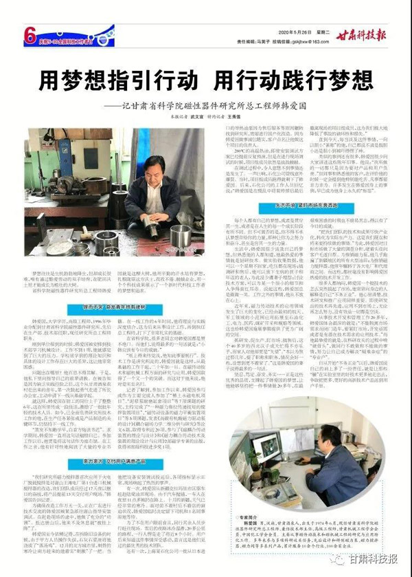 【致敬新時代 禮贊科學家◎科技之光】用夢想指引行動 用行動踐行夢想——記甘肅省科學院磁性器件研究所總工程師韓愛國