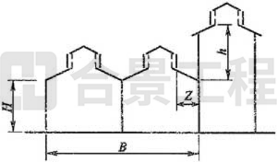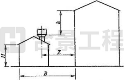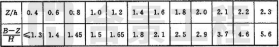注:當(dāng)Z/h>2.3時(shí),建筑物的相關(guān)尺寸可不受限制。