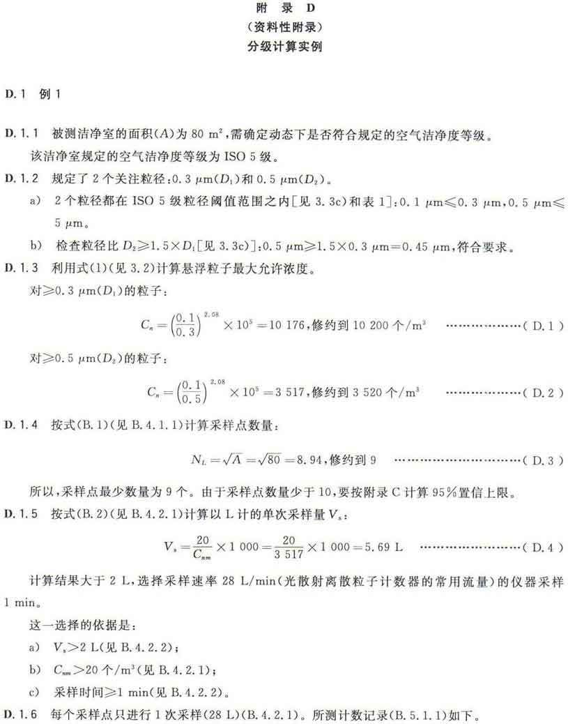 GB/T25915的本部分劃分潔凈室及相關(guān)受控環(huán)境的空氣潔凈度等級僅依據(jù)其內(nèi)的空氣懸浮粒子濃度,該濃度系指粒徑大于或扥估閾值(低限)粒徑為0.1μm~5μm規(guī)定粒徑以外粒子總數(shù)的潔凈度等級。但可以用U描述符合M描述符,分別表述超微粒子(<0.1μm)和大粒子(>5μm)的總數(shù)。