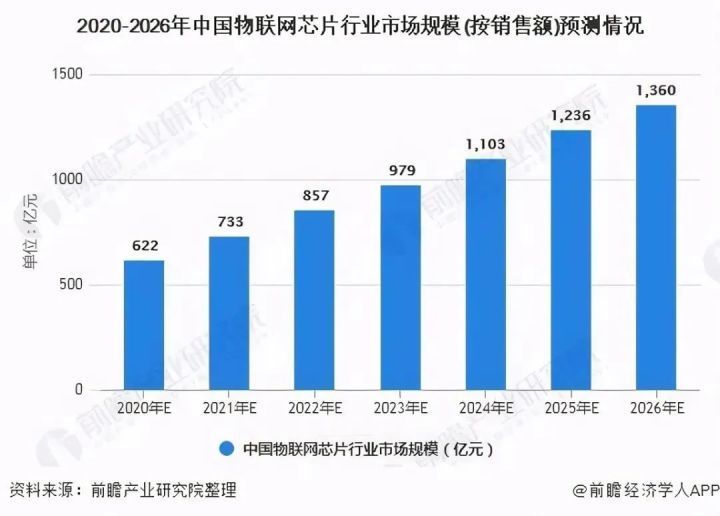 隨著傳統(tǒng)行業(yè)自動(dòng)化升級(jí),物聯(lián)網(wǎng)在垂直領(lǐng)域終端用戶的滲透率提升,物聯(lián)網(wǎng)芯片市場快速增長,前瞻產(chǎn)業(yè)研究院分析預(yù)計(jì),2022年我國物聯(lián)網(wǎng)芯片市場規(guī)??蛇_(dá)857億元人民幣,有望在2024年達(dá)到千億規(guī)模,來自Counterpoint的數(shù)據(jù)顯示,中國消耗了全球近60%的蜂窩物聯(lián)網(wǎng)芯片。