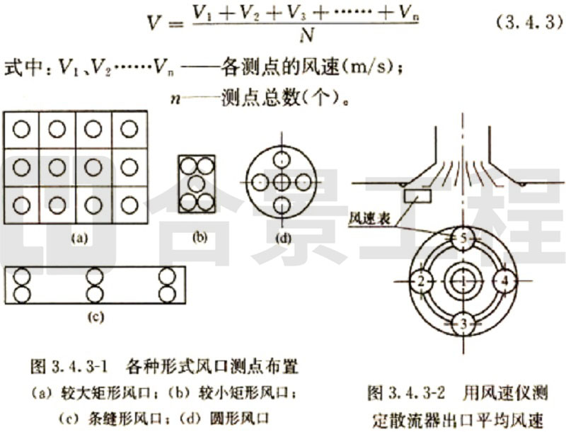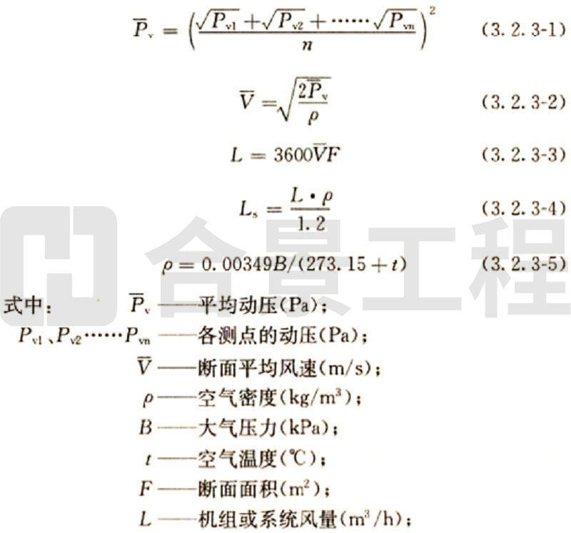 (2)當(dāng)采用熱電風(fēng)速計(jì)或數(shù)字式風(fēng)遺計(jì)測量風(fēng)量時,斷面平均風(fēng)速為各測點(diǎn)風(fēng)速測量值的平均值,實(shí)測風(fēng)量和標(biāo)準(zhǔn)風(fēng)量的計(jì)算方法與畢托管和微壓計(jì)測量計(jì)算方法相同。