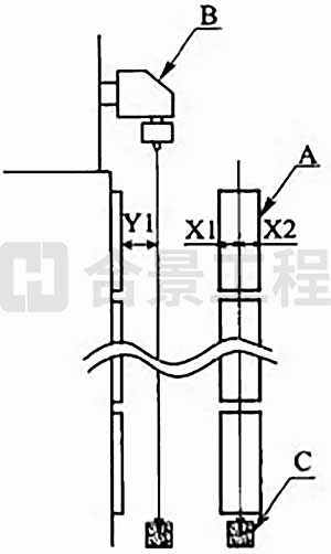 1 調(diào)整送棒裝置的XY單元獲得設(shè)備中心線(圖8.8.4-1),應(yīng)使中心線與基準板間距Y1符合設(shè)備要求尺寸,中心線處于基準板中心位置,且X1=X2。